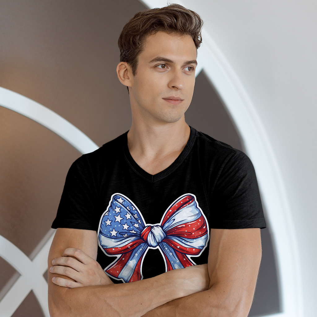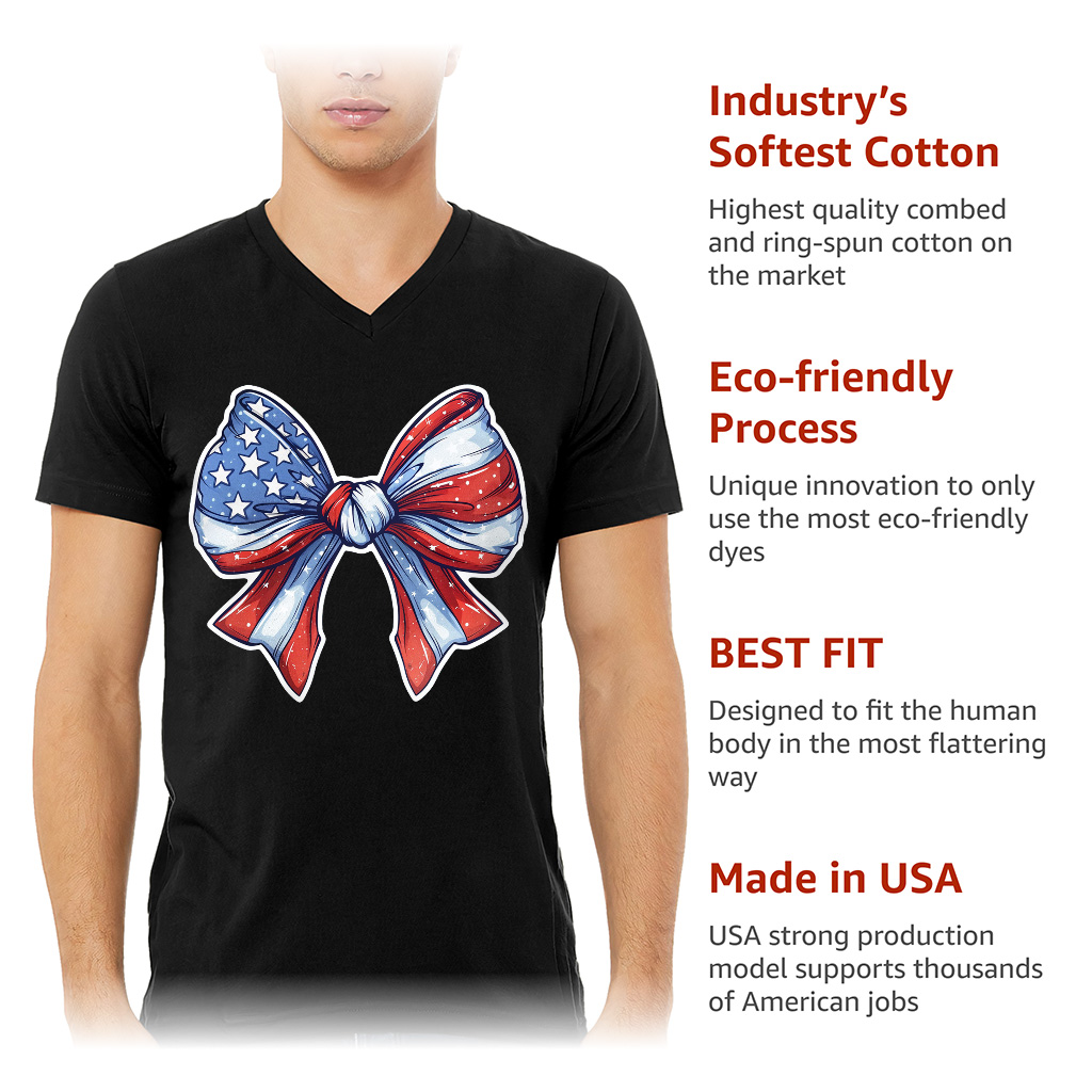 American Bow V-Neck T-Shirt – Coquette Bow Basic T-Shirt – Memorial Day Tee