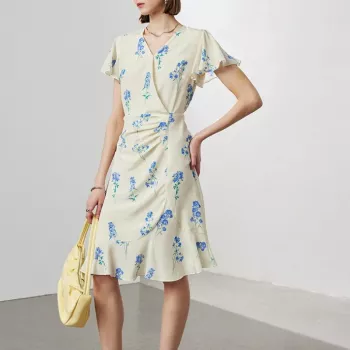 Elegant Floral Silk Wrap Dress
