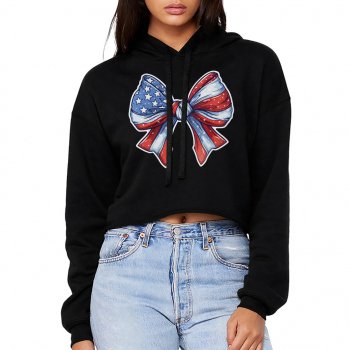 American Bow Women’s Cropped Hoodie – Coquette Bow Hooded Sweatshirt – Memorial Day Super Crop Top Hoodies