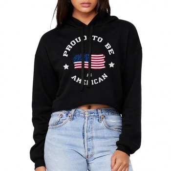 Proud to Be an American Women’s Cropped Hoodie – Land Of the Free Hooded Sweatshirt – America Freedom Super Crop Top Hoodies