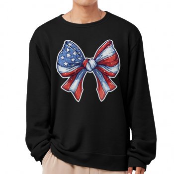 American Bow Sweatshirt – Coquette Bow Crewneck Sweatshirt – Memorial Day Unisex Sweatshirt