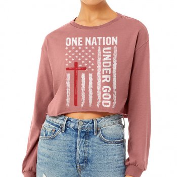 One Nation Under God Cropped Long Sleeve Sweatshirt – Est 1776 Women’s Crop Top – Christian Patriotic Long Sleeves Pullover