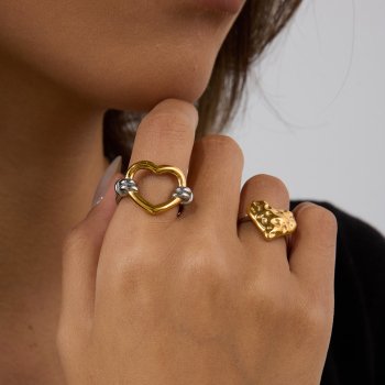 Adjustable 18K Gold Plated Stainless Steel Ring with Natural Stone