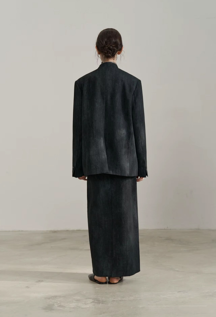 The modern stand collar and tailored fit make this blazer a statement piece. The structured fabric offers a sleek finish, while the carefully designed details, such as shoulder pads and functional pockets, provide both style and utility. This jacket is perfect for anyone looking to combine elegance and versatility in their everyday wardrobe.