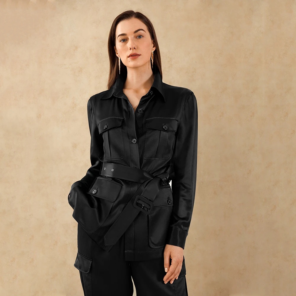 From the office to casual weekend trips, this silk jacket is a versatile choice for every occasion. The sleek design is ideal for adding polish to your work attire, while the lightweight feel makes it perfect for layering on those cooler fall days. Whether you’re heading out to a meeting or enjoying a relaxed dinner with friends, the Myrtus Blazer ensures you always look your best with minimal effort.