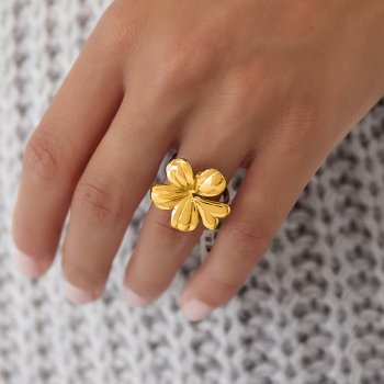Women’s Romantic Heart Flower Open Ring 18K Gold-plated Stainless Steel