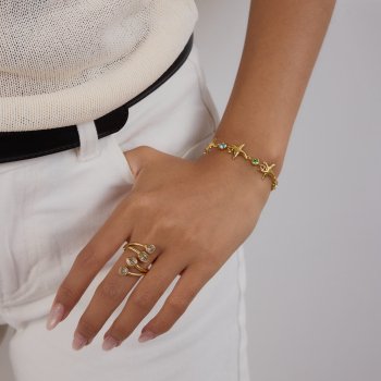 Women’s 18K Gold-Plated Starfish Bracelet with Colorful Zircon for Ocean-Inspired Elegance