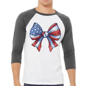 American Bow Baseball T-Shirt – Memorial Day 3/4 Sleeve – Coquette Bow Raglan Jersey Shirt